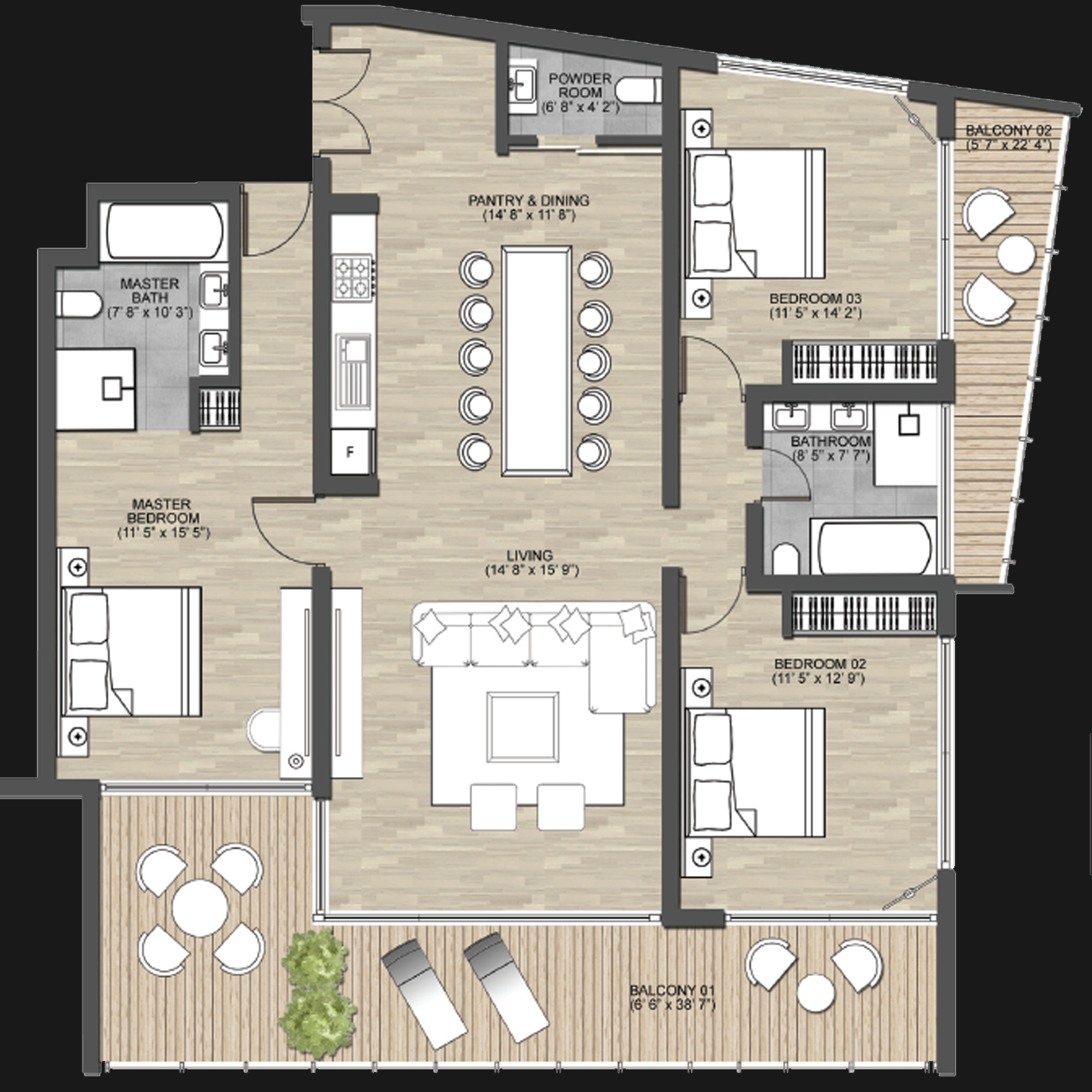 Residences - 1438 sq ft/ 134 sq m